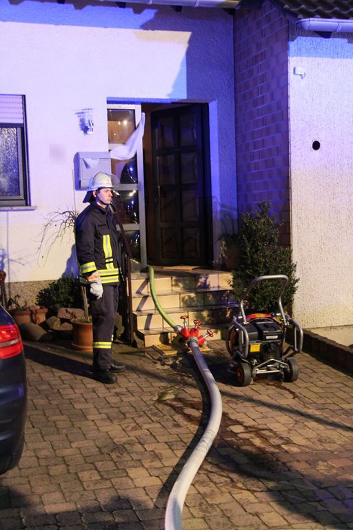 Beim Eintreffen der Feuerwehr brannte ein Wäschetrockner im Keller eines Einfamilienhauses. Die Einsatzkräfte löschten den Brand unter schwerem Atemschutz mit einem C-Rohr. Anschließend wurde das Gebäude mittels Überdrucklüfter rauchfrei gemacht und die Einsatzstelle an die Polizei übergeben.